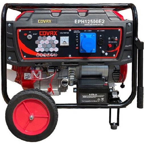 موتور برق بنزینی 8.5 کیلو وات کواکس مدل EPH12500E2موتور برق کواکس استارتی 8500 وات مدل EPH12500E2, از نوع موتور هواخنک, چهازمانه و تکفاز میباشد. نوع سوخت قابل استفاده بنزین است. فرکانس 50 هرتز است. دارای موتور قدرتمند به توان 18 اسب است که در حالت اوج به خروجی برق 8500 وات میرسد.دارای چرخ , دسته و باتری.